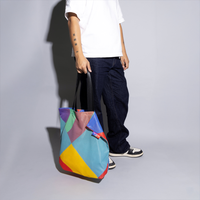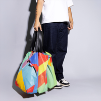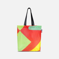 Nach einer Veranstaltung werden Fahnen oft entsorgt. Schade. Das fand Amsterdam 750 auch. Deshalb bekamen wir die Möglichkeit, daraus eine besondere Produktkollektion zu fertigen, darunter diese funktionale Tote Bag. Dank der auffälligen Farben und grafischen Muster entstanden Taschen, die so lebendig sind wie die Stadt selbst. Und da jede Fahne anders ist, gleicht keine Tote Bag der anderen.