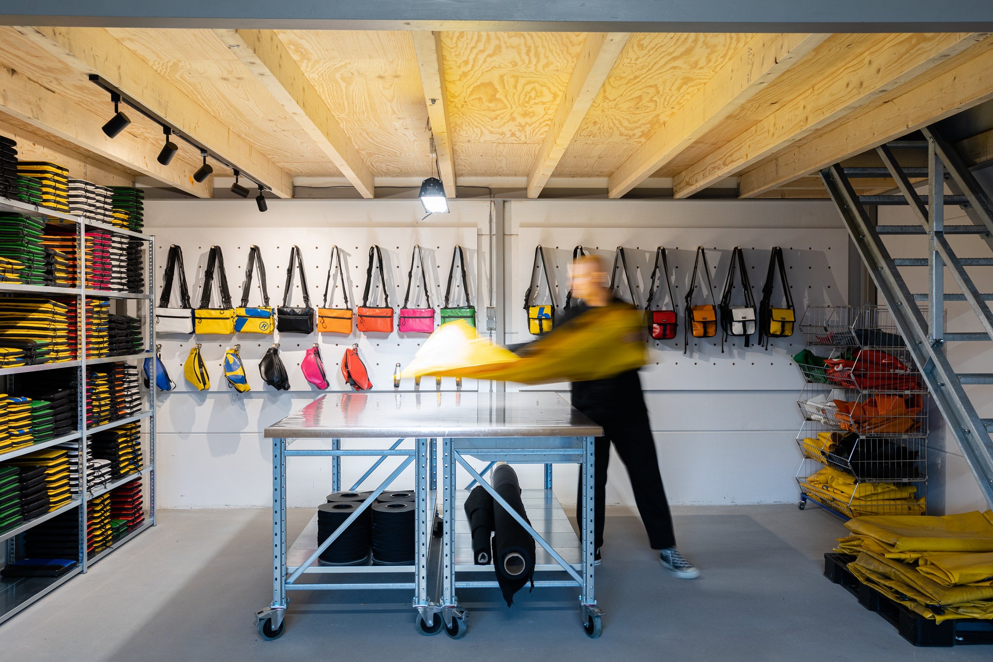 Our bags are proudly handmade and locally produced. The reclaimed materials are precisely cut using patterns, then cleaned and finished by hand when needed. One of Unbegun’s seamstresses is Maartje — a former theatre costume designer who has been creating bags for Unbegun for over ten years from her studio.